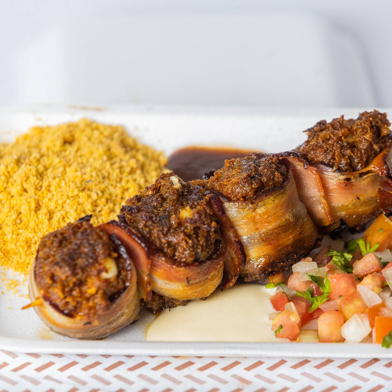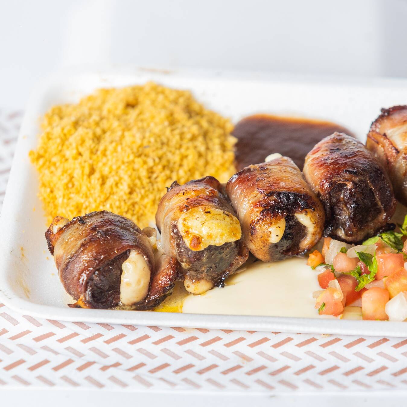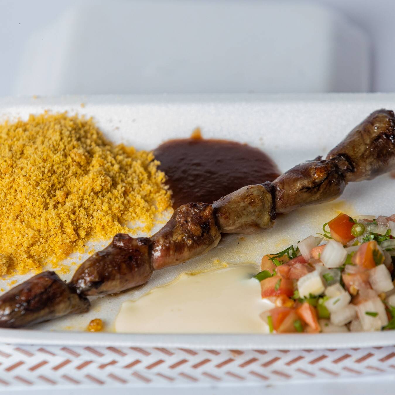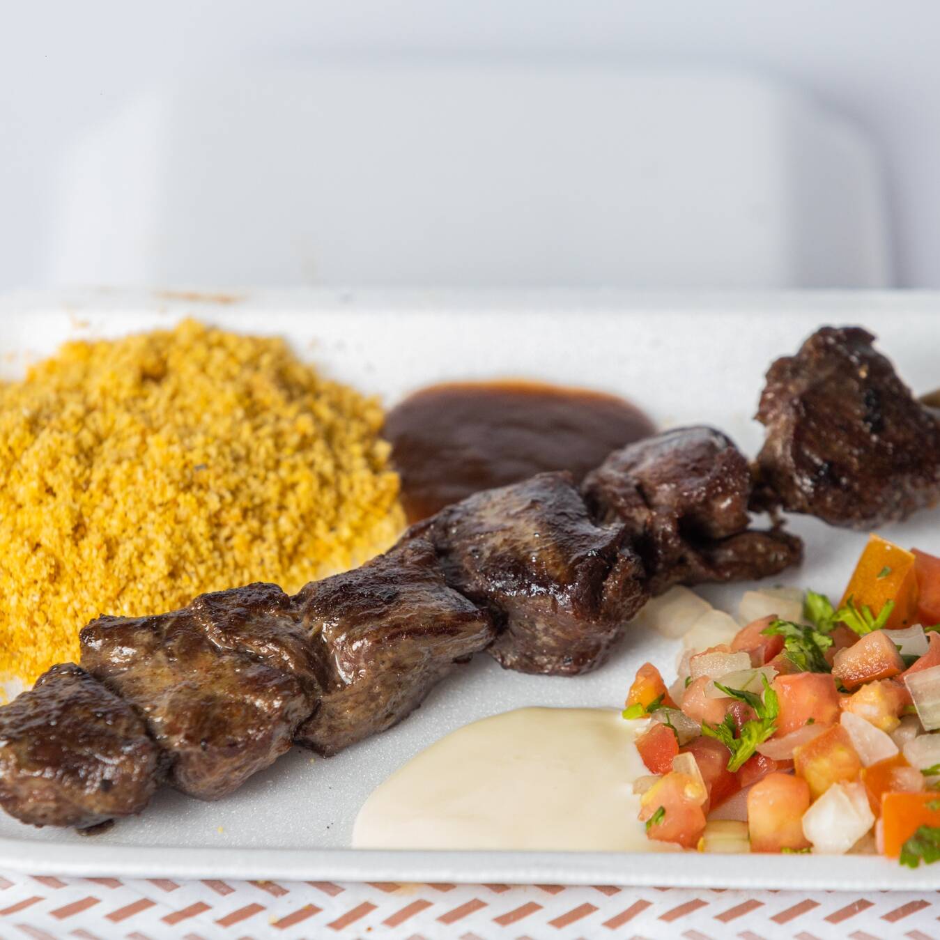 acompanha farofa,vinagrete,barbecue e maionese de alho.