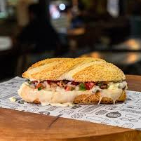 PÃO BAGUETE PARMESÃO, FRANGO EM CUBOS MARINADO NA CEBOLA ROXA, QUEIJO PRATO, PRESUNTO, SALADA E MOLHO ESPECIAL.