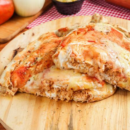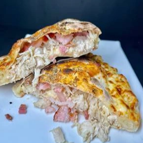 Massa artesanal, super recheado com queijo mussarela, frango e bacon.