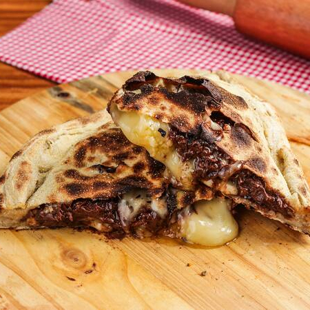 Massa artesanal, super recheado com queijo mussarela, creme de chocolate e pedaços de sonho de valsa.