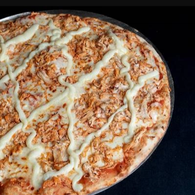 Massa artesanal, base de molho de tomate, queijo mussarela, frango desfiado e cheddar.