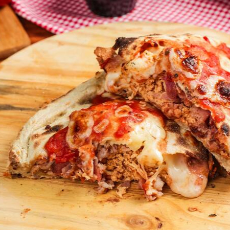 Massa artesanal, super recheado com carne de sol suculenta, queijo mussarela, cebola e um toque especial de molho barbecue.
