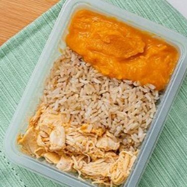 Frango Desfiado, Arroz E Purê De batata. Vai na marmita Fit de 350g uma tradicional comida saudável, nutritiva e balanceada. Serve 1 pessoa que coma moderadamente.
