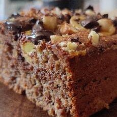 Bolo de banana feito com aveia, uva passa, ovo e mix de castanhas (Amêndoa, castanha do Pará e Caju). Sem açúcar, sem lactose e sem glúten.