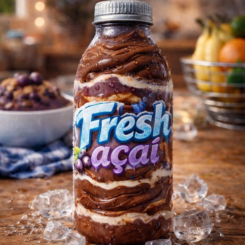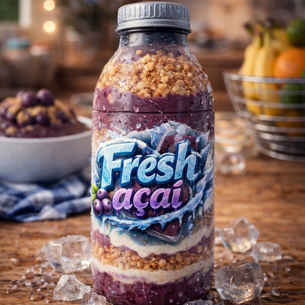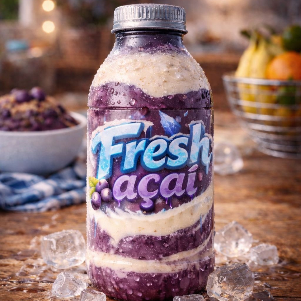 Açaí premium batido na garrafa, leite condensado