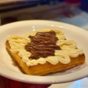 waffle americano com recheio de ninho e geleia de frutas vermelhas