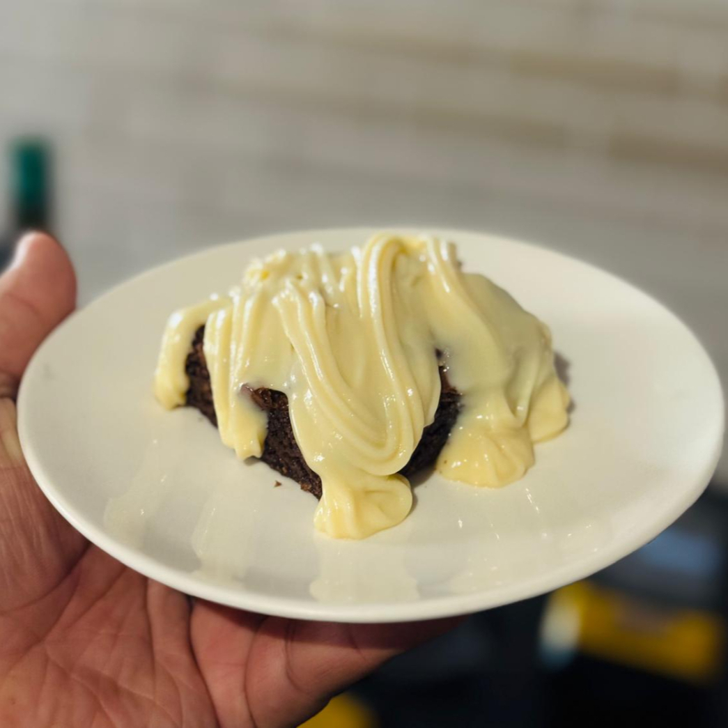 Sorvete de creme + pedaços de brownie + chantilly + calda de chocolate. Uma combinação perfeita