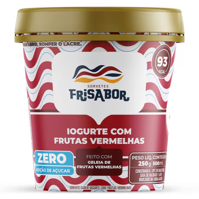 Sorvete de iogurte com frutas vermelhas zero açúcar.