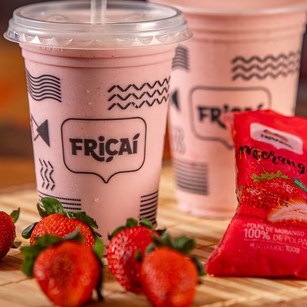 Sorvete de creme batido com a polpa de fruta Frisabor de sua escolha