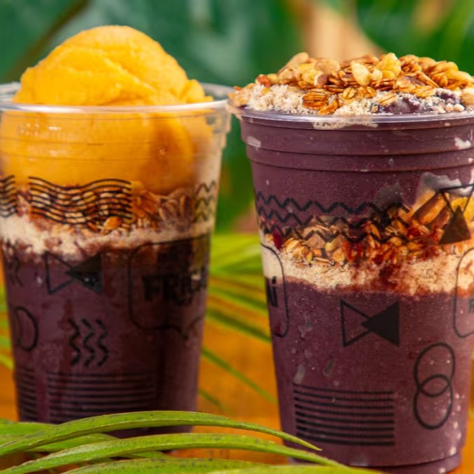Açaí com granola e farofa crocante.