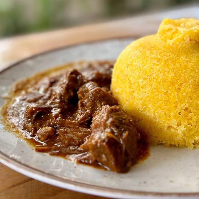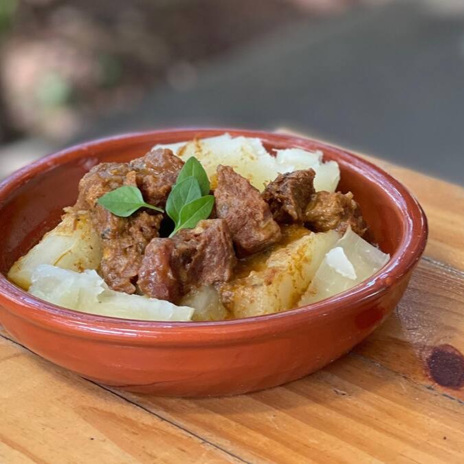 Macaxeira acompanhada de Carne de Panela.