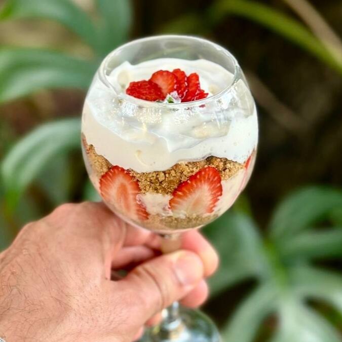 Uma combinação irresistível de texturas: base crocante de biscoito, creme aveludado de Ninho e geleia artesanal de morango, realçada pela doçura dos morangos frescos. Finalizamos com uma delicada camada de chantilly, criando um equilíbrio perfeito entre leveza e sabor