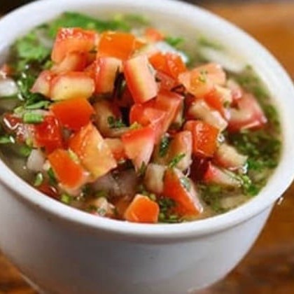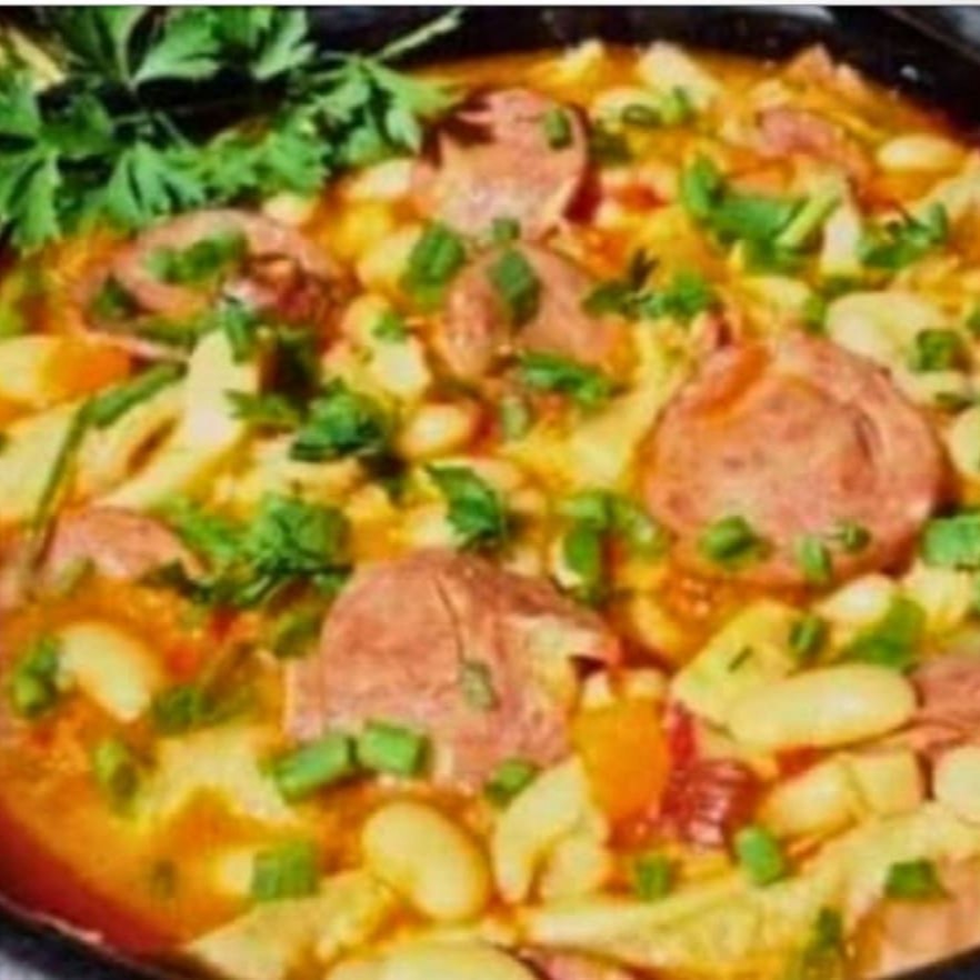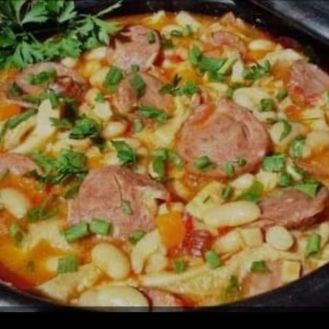 Acompanha: dobradinha, arroz, batata frita, vinagrete e farofa.