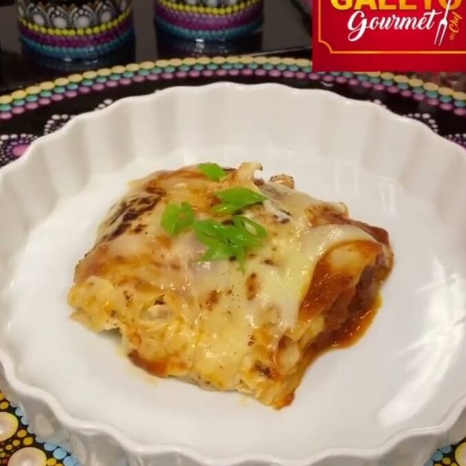 Delicie-se com a Lasanha de Frango, uma opção individual que combina camadas de sabor e textura irresistíveis.