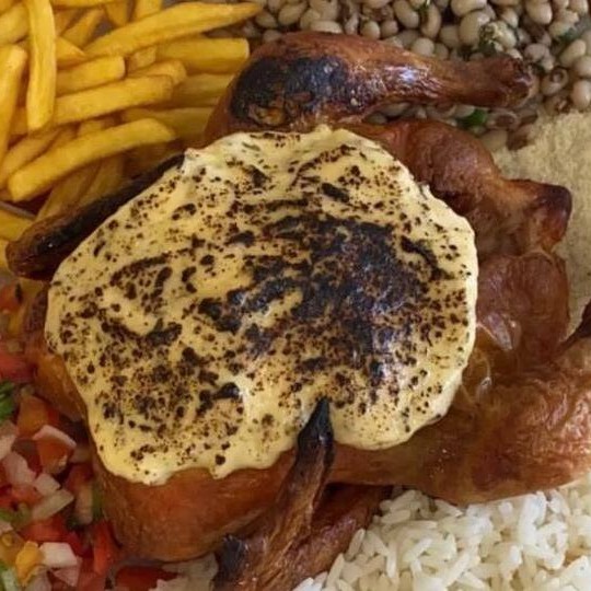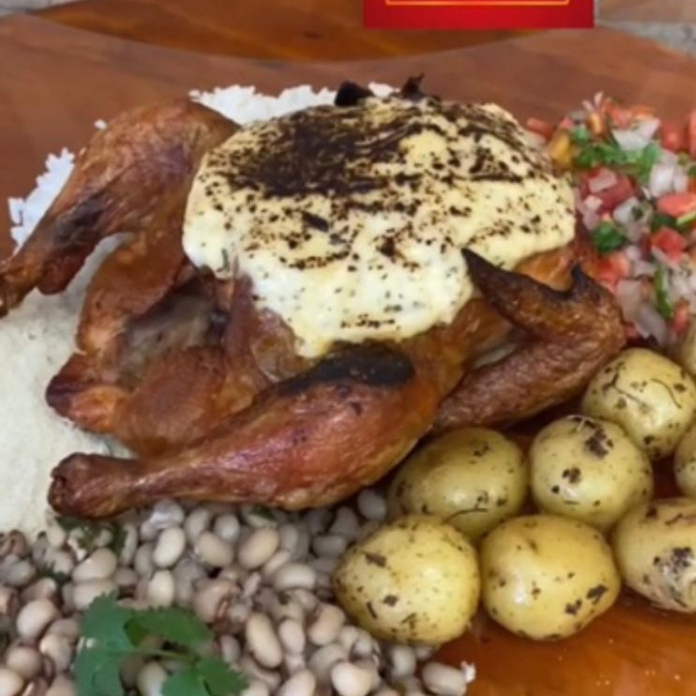 Experimente o requinte do Galeto Gourmet Completo, acompanhado de creme de queijo por cima do galeto, arroz, feijão macassar, farofa, vinagrete e batatas rústicas assadas ou batata frita. Uma combinação perfeita para uma refeição sofisticada. Serve 4 Pessoas
