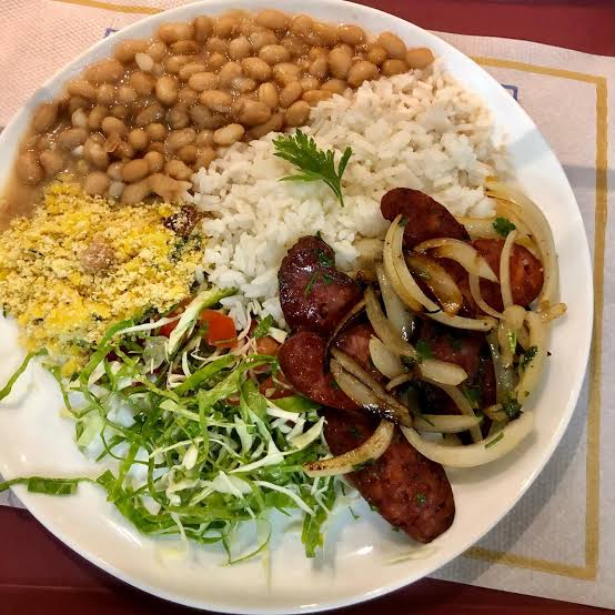 Feijão macassar ou feijão preto colocar na descrição , arroz , farofa, vinagrete, pure ou batata rustica ( colocar na descrição ) ,
