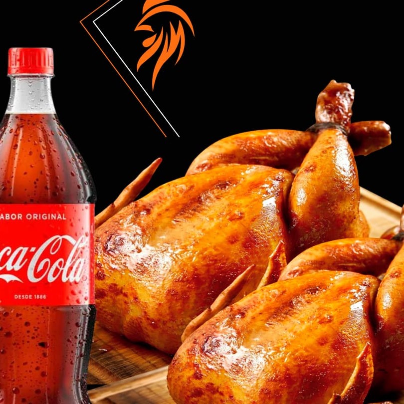 Galeto de máquina, marinado cerv. preta caracu, acompanhado com vinagrete e farofa + coca cola de 1l