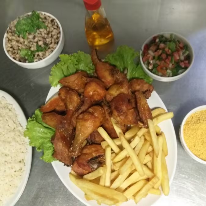 (Arroz, Feijão, farofa, vinagrete, manteiga de garrafa e fritas) / Serve 4 Pessoas