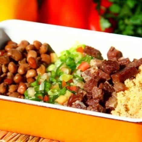 (feijão, carne de sol, vinagrete e farofa)