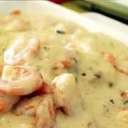 (camarões refogados com cebola e azeite, ao molho branco, Catupiry, acompanha arroz branco e purê) / Serve Duas Pessoas