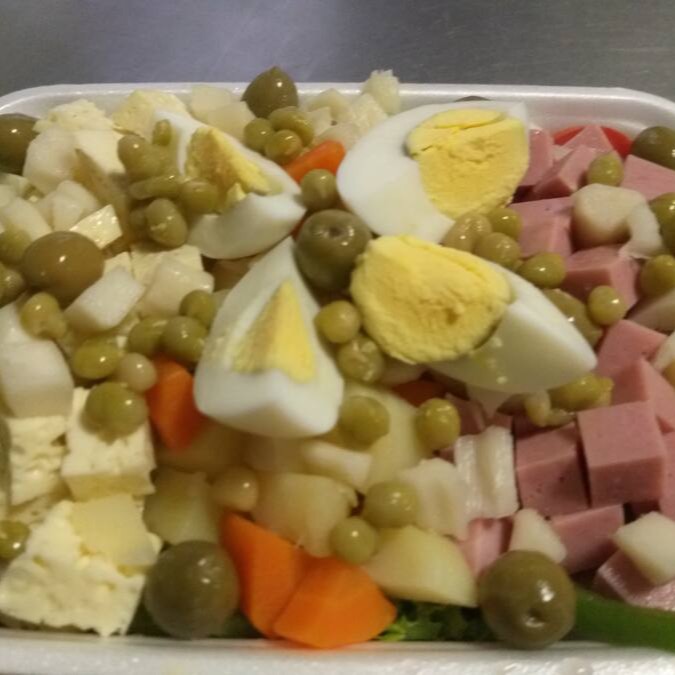 (alface, tomate, batata cozida, maionese e ervilha)