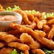 (iscas de peixe empanadas e molho rosê)