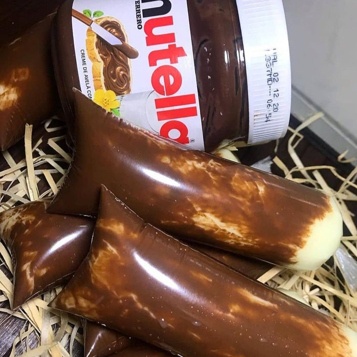 Nosso sacolé de leite Ninho é bem cremoso, com textura aveludada e sabor marcante. E pra deixar perfeito, vai com Nutella trazendo aquele toque intenso de chocolate