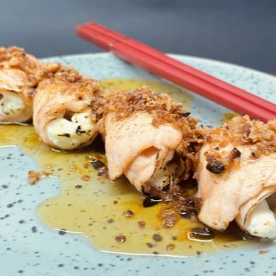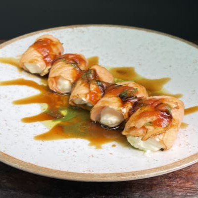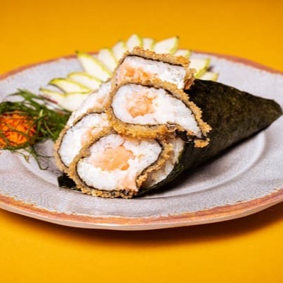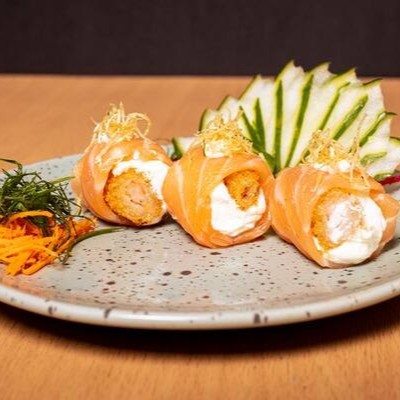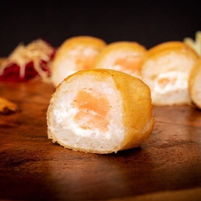 Massa De Harumaki, Arroz Recheado Com Salmão E Nosso Delicioso Cream Cheese Do Chefe.