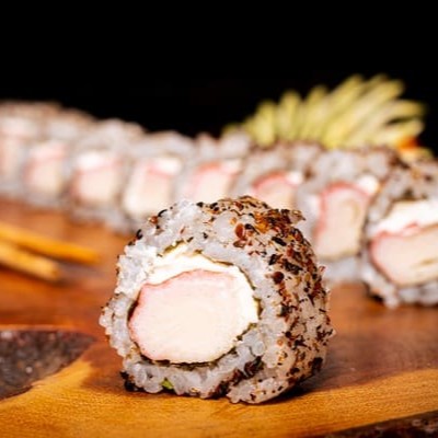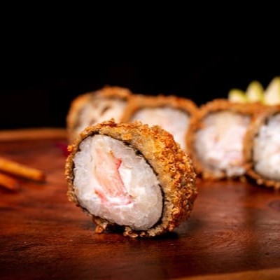 Nori(Alga) Envolto No Arroz, Com Recheio De Kani Empanado, Gergelim E Nosso Delicioso Cream Creese Do Chefe.