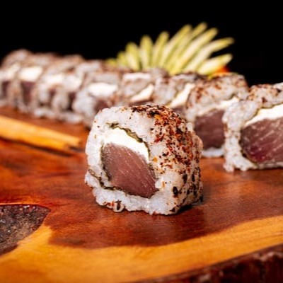 Nori(Alga) Envolto No Arroz, Com Recheio De Atum Natural, Gergelim E Nosso Delicioso Cream Creese Do Chefe.