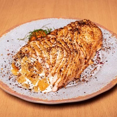 Lâmina De Salmão Recheada Com Arroz, Pasta De Salmão E Nosso Delicioso Cream Creese Do Chefe.