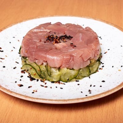 Lâminas De Pepino Japonês Marinado Em Nosso Molho Prime, Recheado Com Atum E Gergelim.