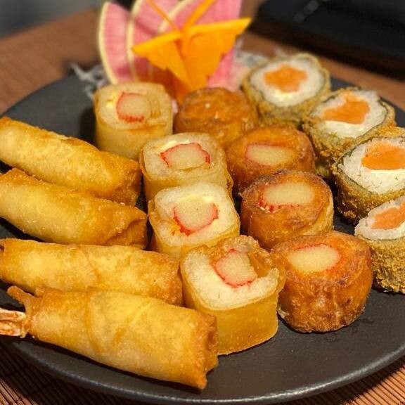 10 peças - envolto na massa, arroz, pasta de camarão, cream cheese e molho especial.