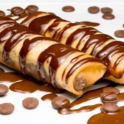 2 und - rolinho de massa fina e crocante, com recheio de chocolate meio amargo e queijo
