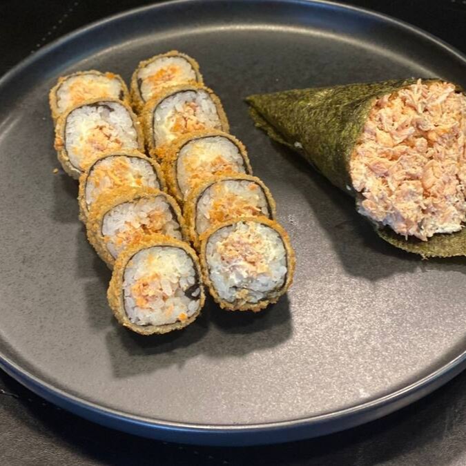 10 peças - Atum e cream cheese, envoltos em alga e arroz!