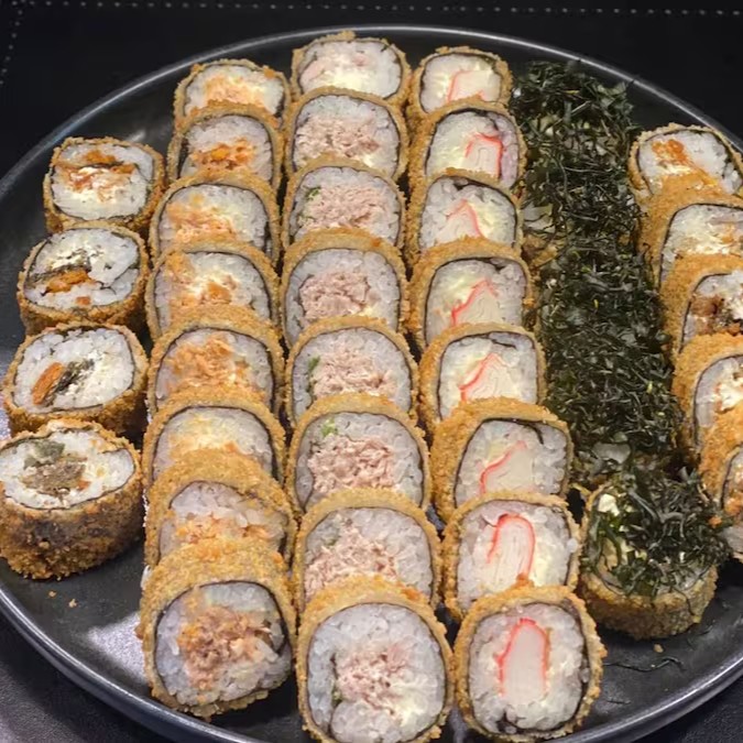 10 peças - camarão empanado com cream chesse envolto em alga com arroz