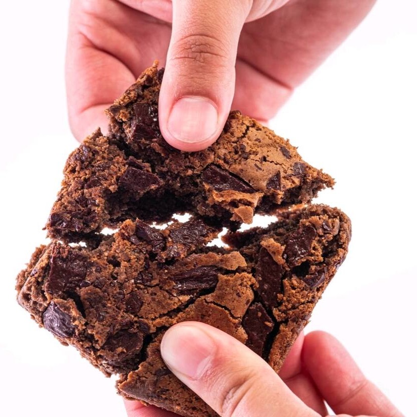 Delicioso brownie com massa macia e recheadissimo de chocolate.