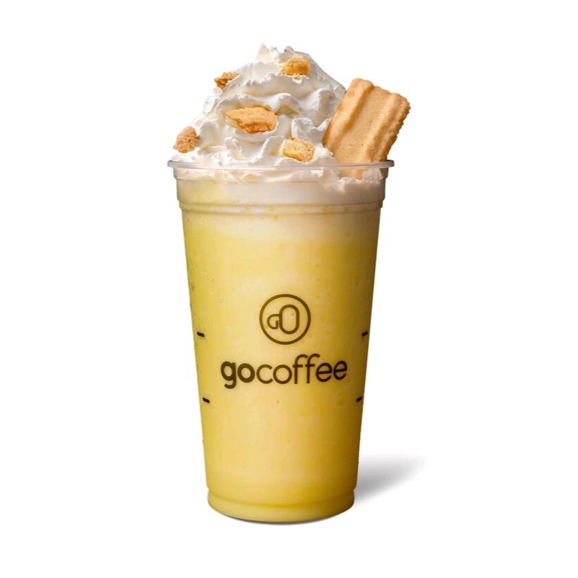 Delicioso Frappe de Torta de Limão Siciliano coberto com chantilly e biscoito amanteigado.