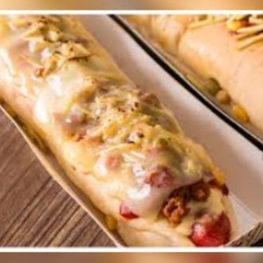 Pão.carne de hanbueguer,ovo,calabresa,creme de cherdda,queijo mussarela,salada,