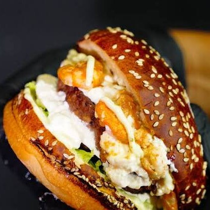 Pao especial carne artesanal camarão creem chesses salada e molho