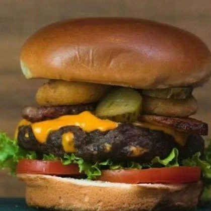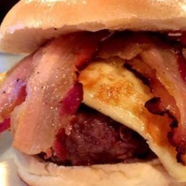 Pao hamburguer artesanal de 160 gm ,queijo mussarela,,bacon,aneis de cebola ,salda e molho golaço