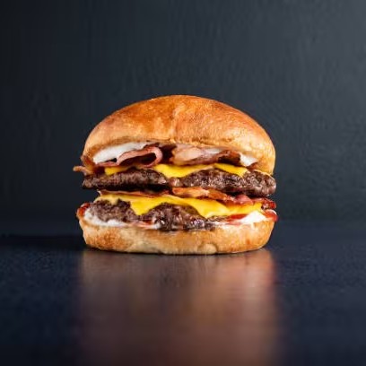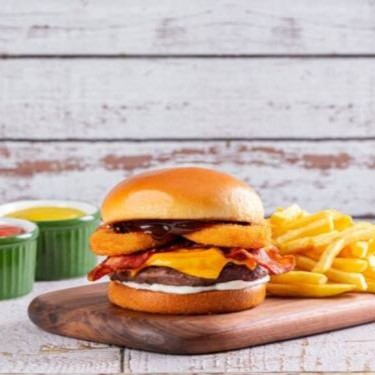 Pao hamburguer artesanal 160gm, queijo cheddar duplo, bacom , salada aneis de cebola , molho golaço