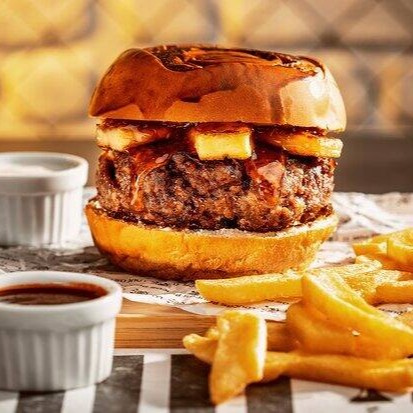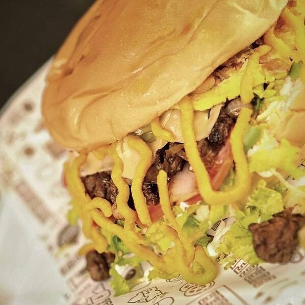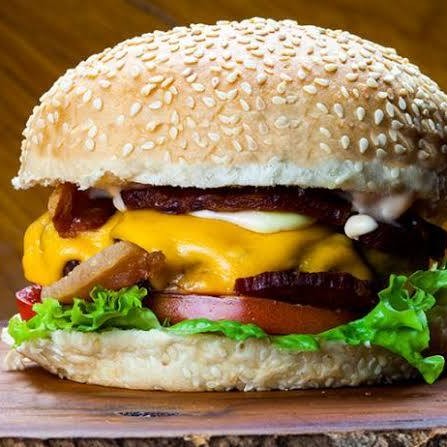 Pão que serve 4 pessoas, 400 gm de carne artesanal, bacon, calabresa,queijo musarela , queijo cheddar,queijo coalho, tomate , alfaçe , cebola caramelizada, batata palha, e e molho golaço esse hamburguer serve 4 pessoas