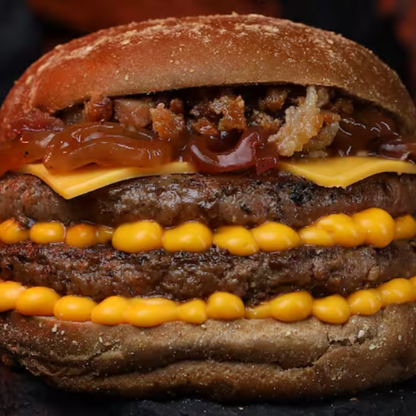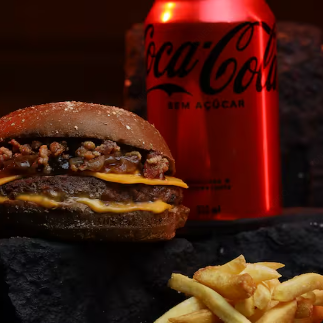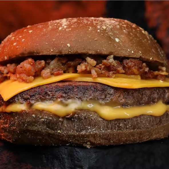 Pão australiano macio, blend suculento de fraldinha 150g, cheddar derretido, cebola caramelizada no barbecue, bacon crocante e o toque final: nosso molho cheddar da casa. Intenso, cremoso e irresistível!