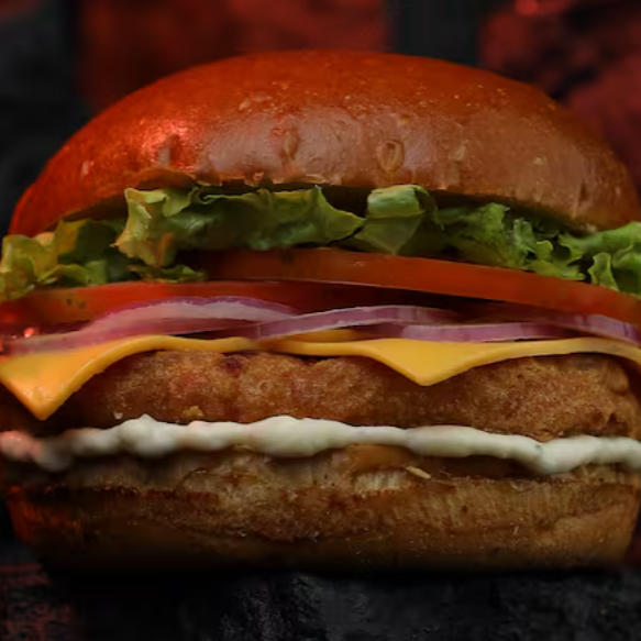 Para os amantes de hambúrguer de frango: Pão brioche amanteigado, chicken supremo, queijo cheddar derretido, cebola roxa, tomate fresca, alface americano, picles e nossa maionese especial. Irresistivelmente leve e apaixonante!