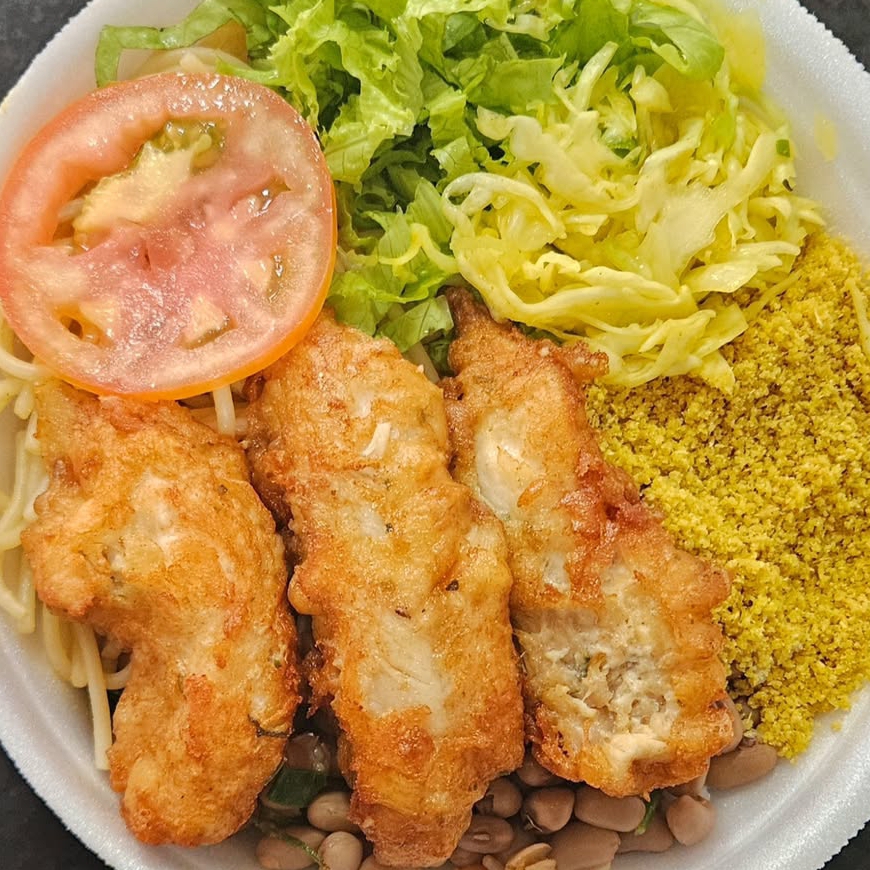 arroz,macarrão,pure,feijão,vinagrete e filé bem sequinho