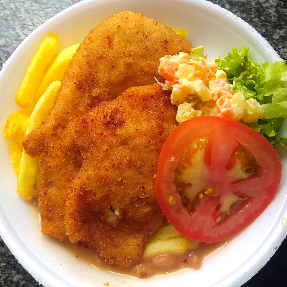 arroz,macarrão,pure,feijão,vinagrete e filé bem sequinho