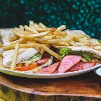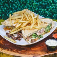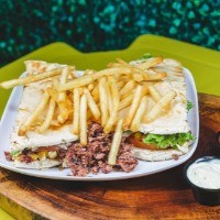 Pão,salada,molho de milho,barbecue,ovo,carne industrial,queijo coalho e carne de sol.