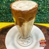 Pão bola, hambúrguer, calabresa, queijo, tomate, alface, cebola caramelizada, barbecue e creme de milho.