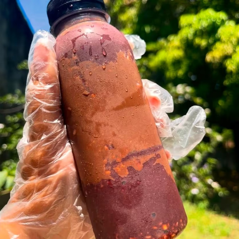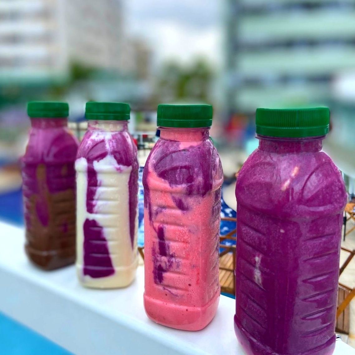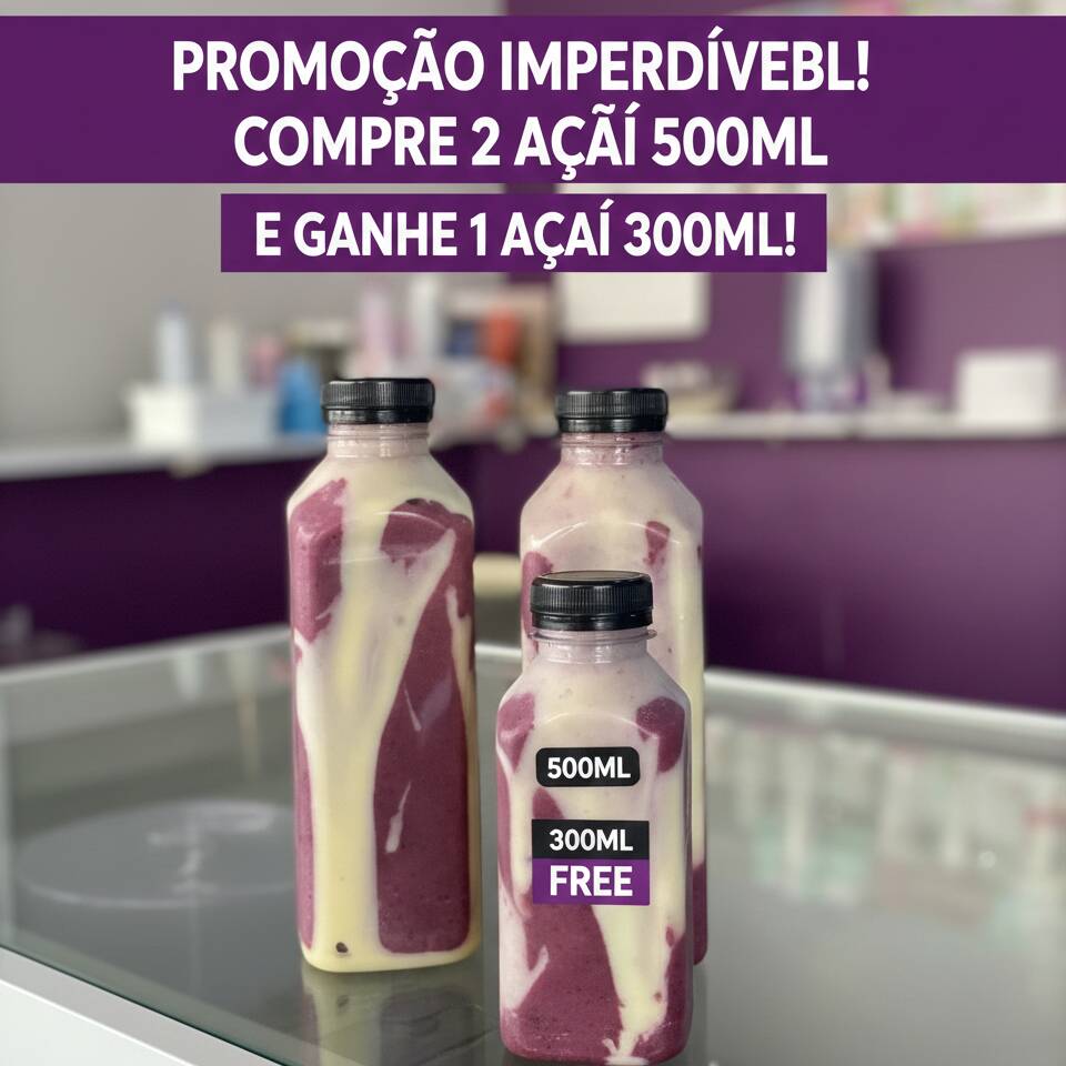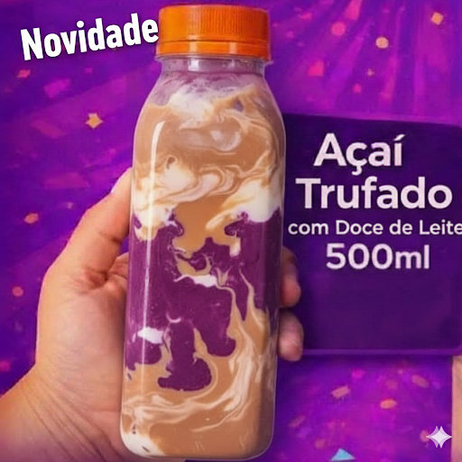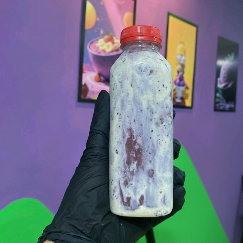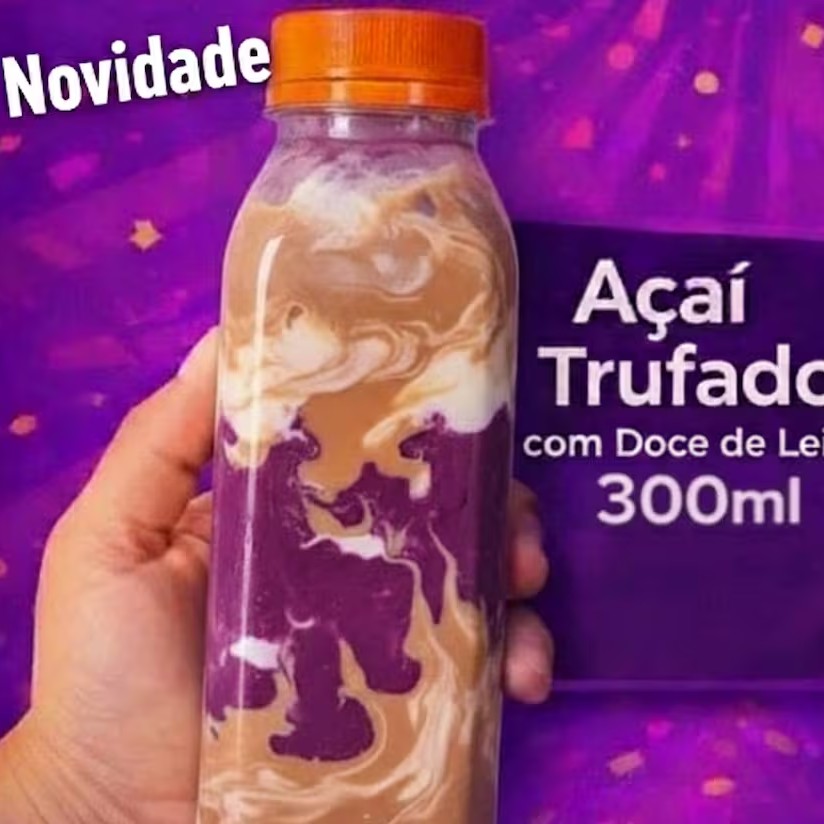 Experimente a sofisticação do açaí batido na hora, servido em nossa garrafinha exclusiva com "wall" (parede) de doce de leite argentino. Uma experiência de sabor rica, densa e refrescante. Agite levemente para misturar os sabores ou saboreie as camadas individualmente!